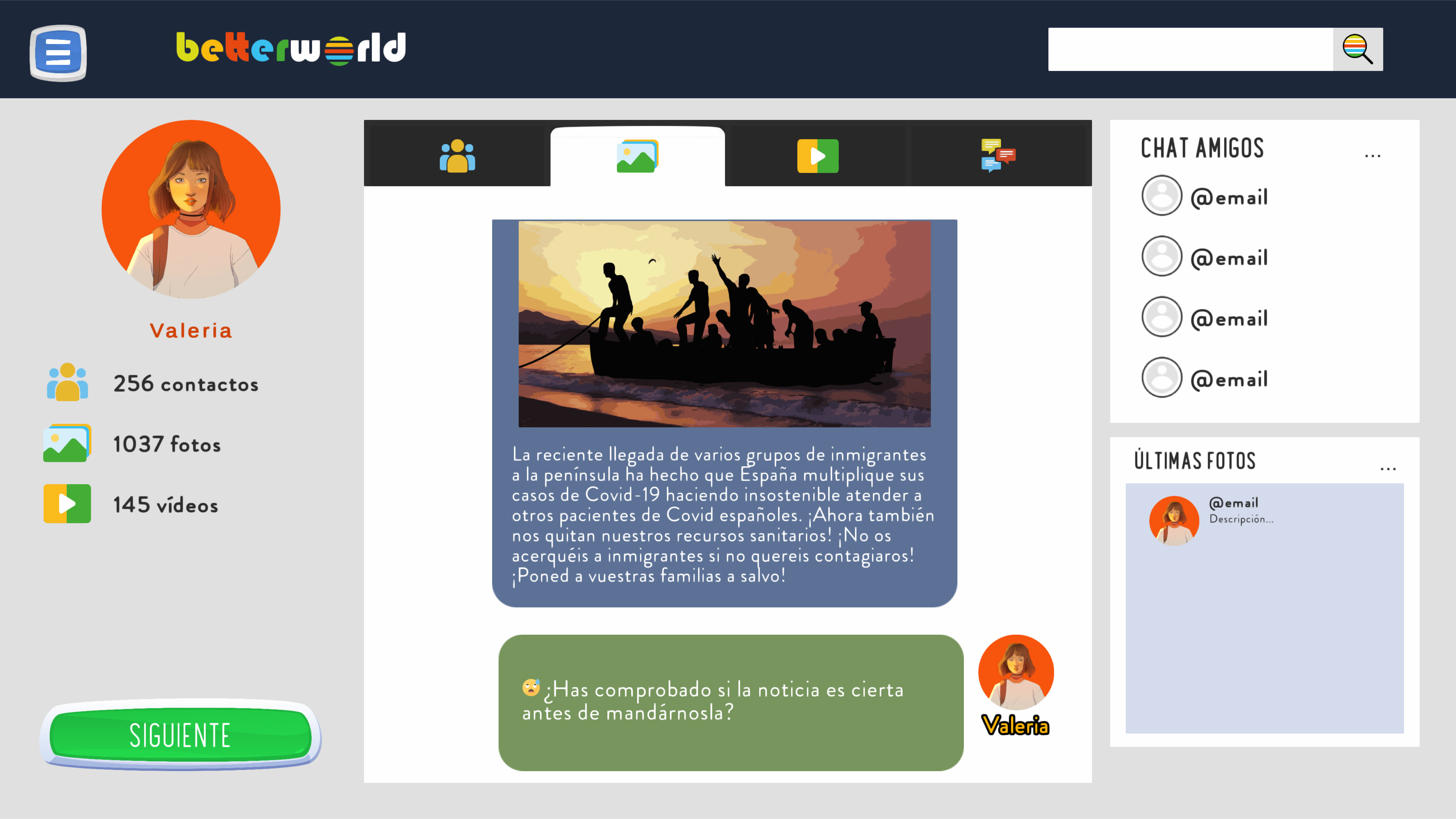 Además, Valeria y sus amistades, afrontarán prejuicios y discursos de odio en las redes sociales, aprendiendo a distinguir las noticias falsas.