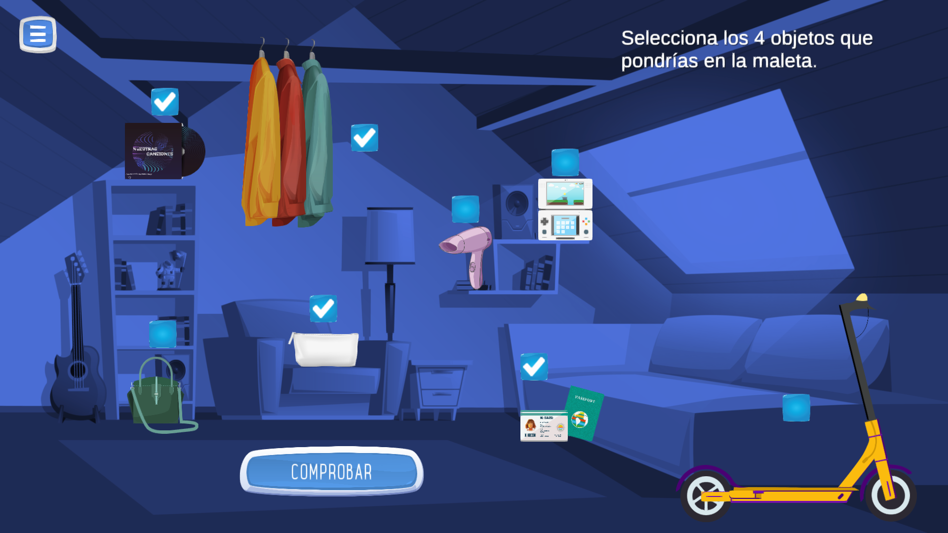 Tras ver el vídeo, hay que elegir las cosas esenciales que llevarse al viaje.